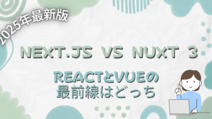 プログラミング Next.js vs Nuxt 3:ReactとVueの最前線はどっちが強い?2025年最新版 困っている人「ReactとVue、結局どっちを選べばいいのか?」「Next.jsとNuxt 3の違いって何?」「2025年の最新トレンドではどちらが優位なの?」こうした疑問を抱えているエンジニアや企業担当者も多いはずです。2025年現在、フ... 2025.08.22 プログラミング